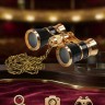 Классическая галилеевская оптическая схема с центральной внутренней фокусировкой, заключенная в белый лакированный корпус с позолоченными (18к) элементами. Трехкратное увеличение и широкое поле зрения позволят вам насладиться представлением даже с галерки.