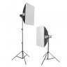 В комплект KeyLight III 2200D SB KIT входят два осветителя мощностью 200 Вт с цветовой температурой 5600К, рефлекторы, пульты ДУ, прямоугольные софтбоксы, стойки высотой до 280 см и сумка для хранения и транспортировки комплекта.