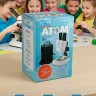 Микроскоп весит всего 600 грамм, а наличие в комплекте жесткого кейса и питание от распространенных батареек типа АА позволяют проводить исследования на открытом воздухе, брать его с собой в путешествия и походы.