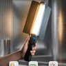 Мощность 23 Вт, многоцветный RGB-режим, регулируемая цветовая температура 2500~8500К, встроенные цветовые спецэффекты, питание от аккумулятора, ЖК-дисплей, регулировка яркости 0-100%, выбор канала и группы, в комплекте шторки и сумка, возможность дистанционного управления.