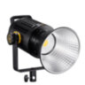 Светодиодный осветитель с круглой COB-матрицей, мощность 60 Вт, цветовая температура 5600 К, CRI>96, TLCI>97, регулирование мощности постоянного света 0–100%, 8 предустановленных световых динамических спецэффектов, байонет Bowens, возможность управления с пульта (приобретается отдельно), по каналу DMX512 или с помощью смартфона по Bluetooth, блок управления с аккумуляторной площадкой V-mount