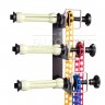 Движение каждого фона осуществляется входящими в комплект роликами с цепями. Рекомендуется для использования с бумажными фонами. Крепление к кронштейнам каждой трубы с намотанным на нее фоном, осуществляется при помощи пары цанговых зажимов, оснащенных ручным приводом для опускания/подъема фона.