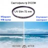 Dicom UV slim 72 mm это ультрафиолетовый светофильтр. Данная модель устраняет воздействие на цветные и черно-белые фотоматериалы невидимого ультрафиолетового излучения, которое наиболее интенсивно в полуденные часы на море, в горах и на больших открытых пространствах. Стекло светофильтра бесцветное и не требует увеличения экспозиции. Рекомендуется постоянно носить светофильтр на объективе в качестве защитного.